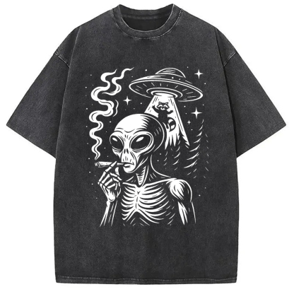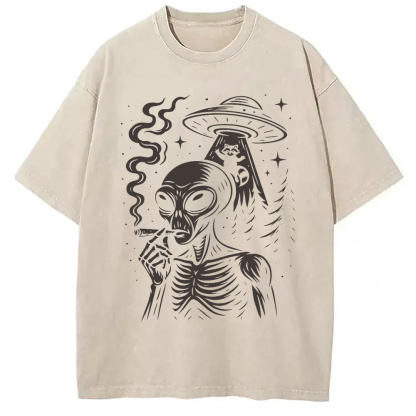 Stoner Alien UFO Raccoon Washed T-Shirt