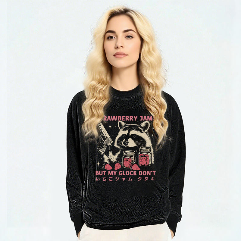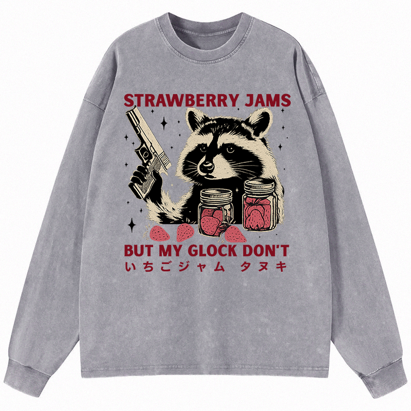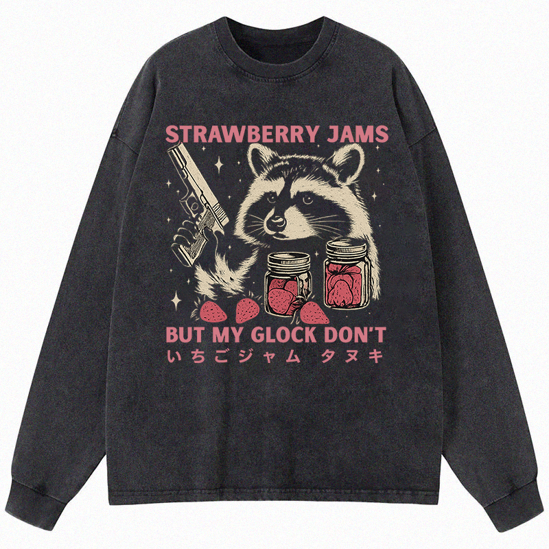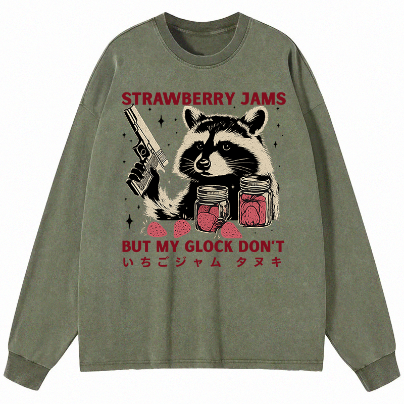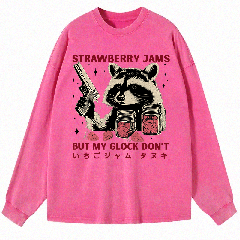 Strawberry Jams Glock Funny Raccoon Long Sleeve Washed T-S