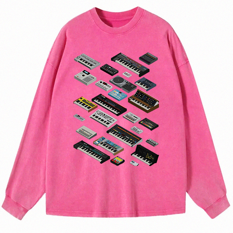Synthesizer Fan Collection Long Sleeve Washed T-Shirt