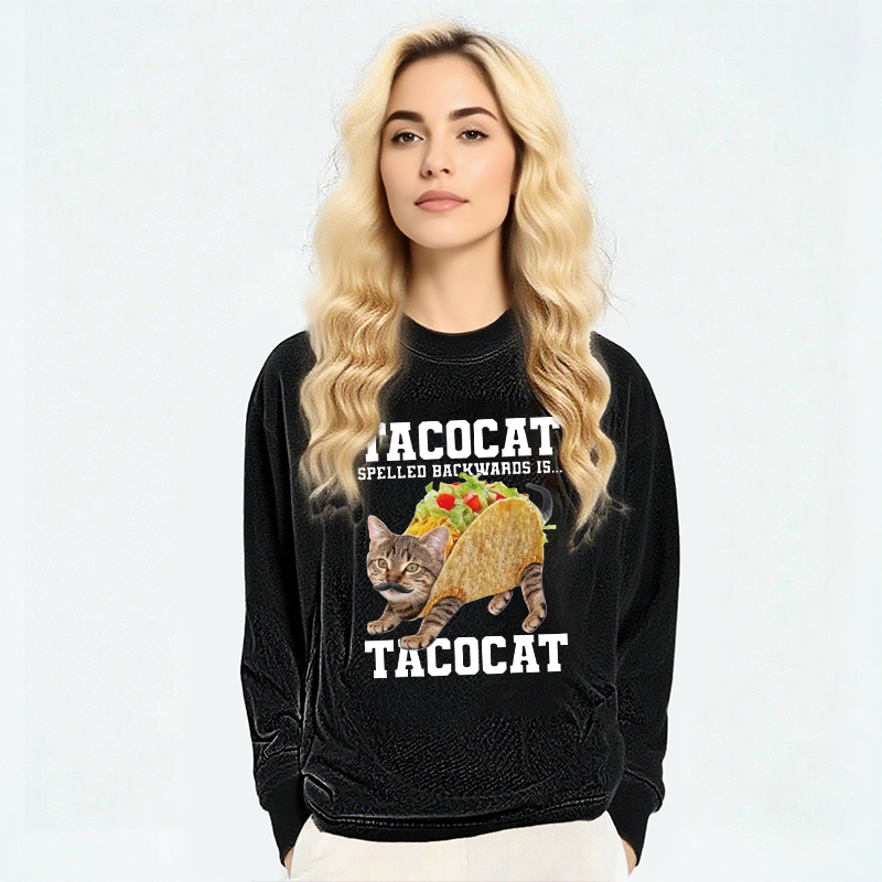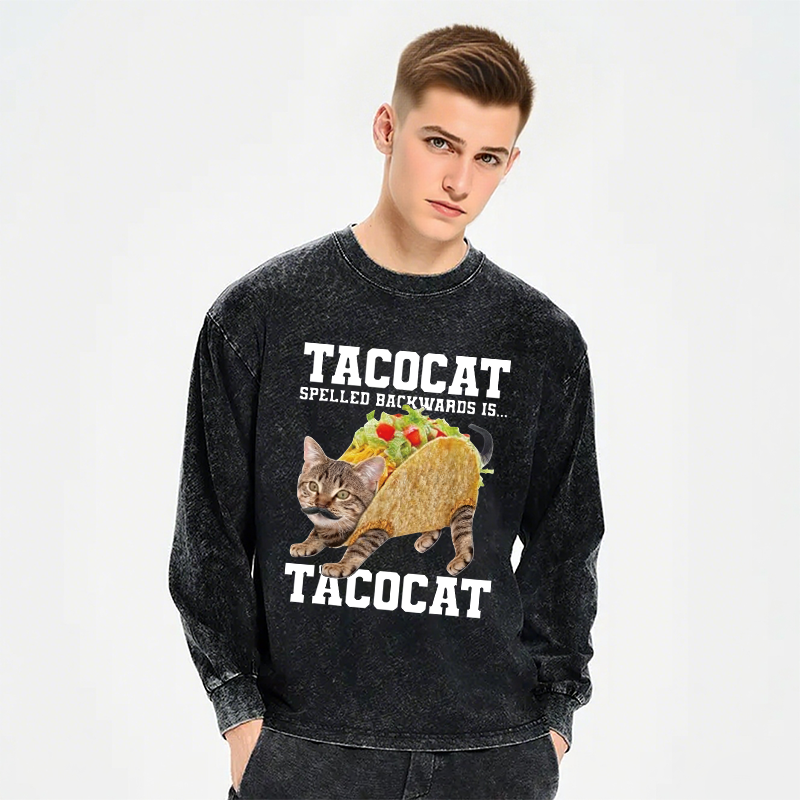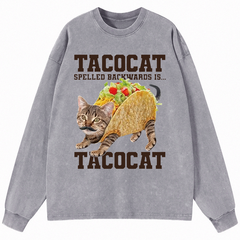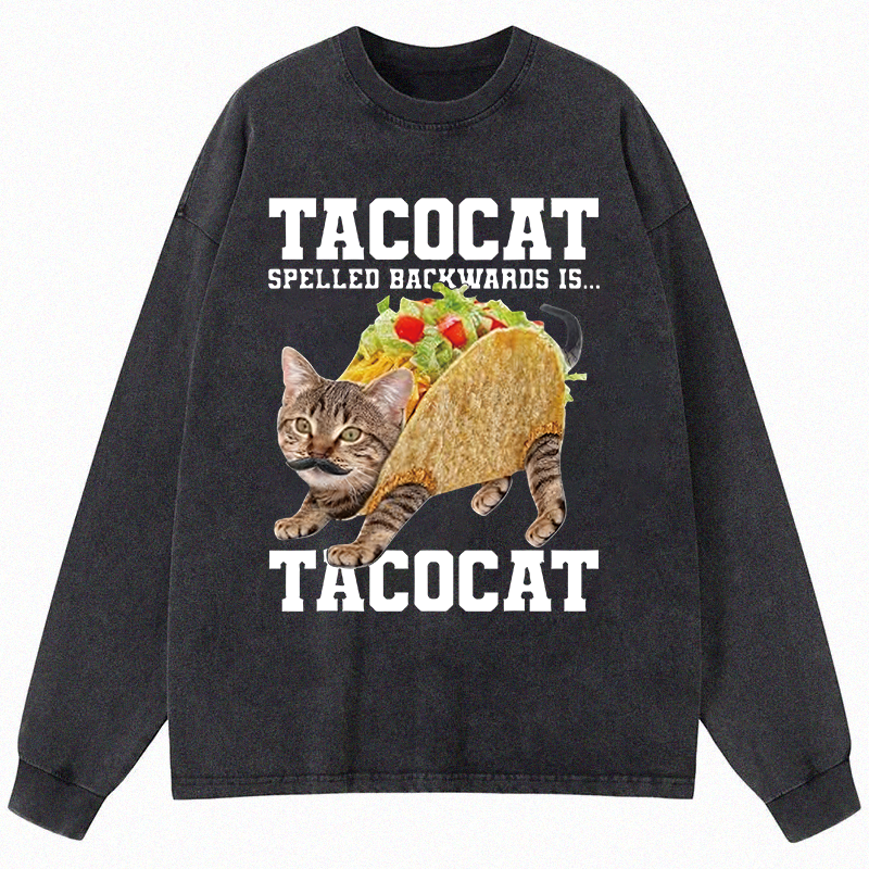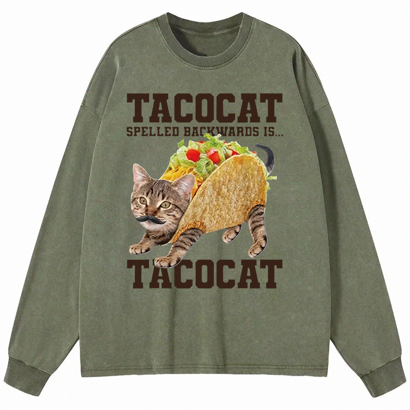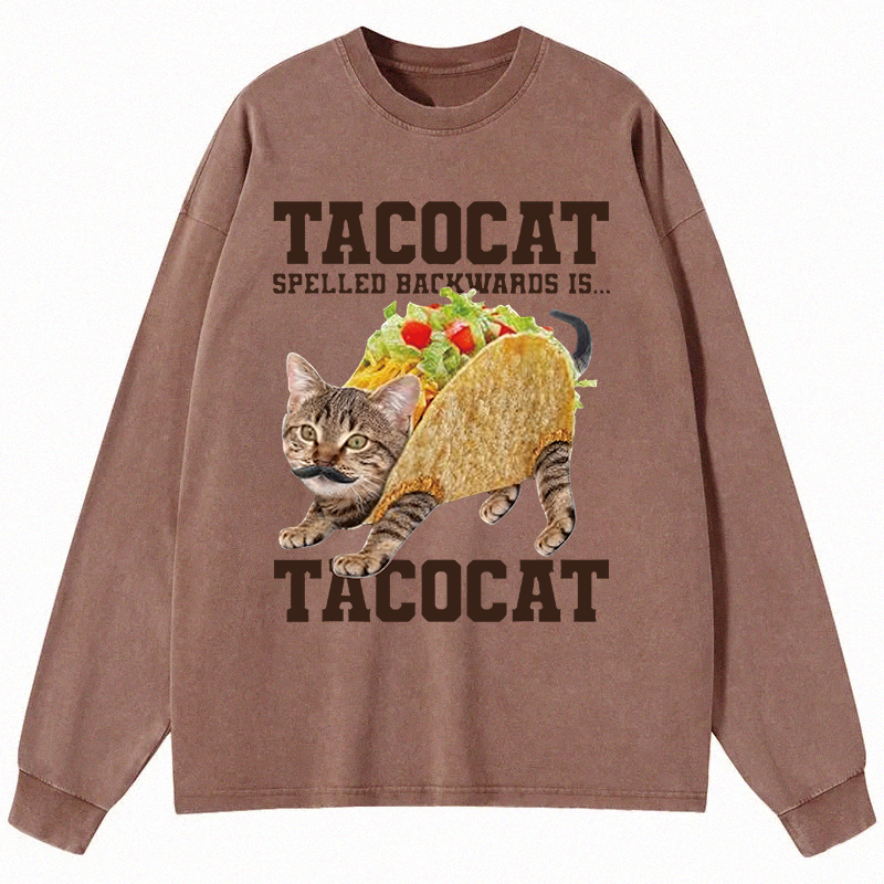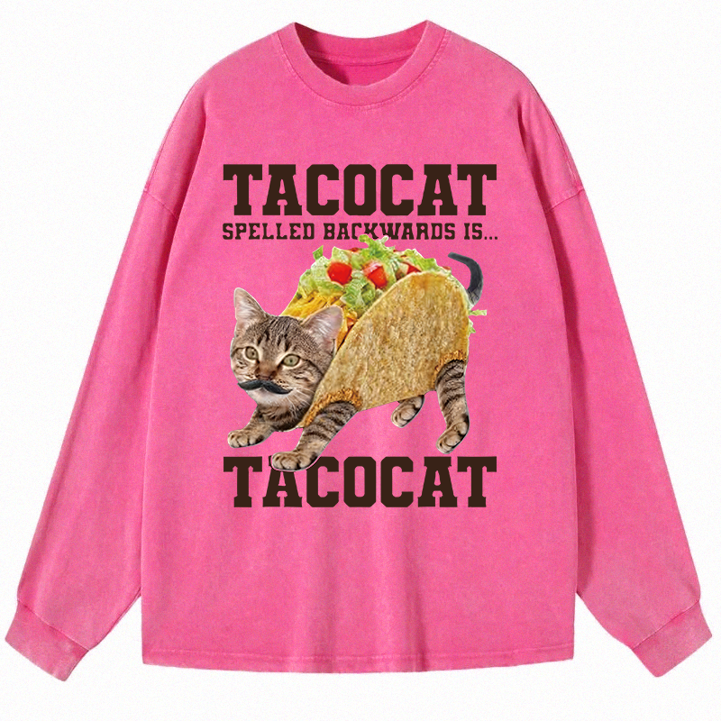 Tacocat Silly Cat Meme Long Sleeve Washed T-Shirt