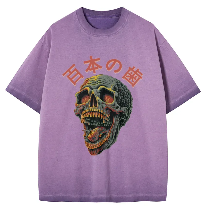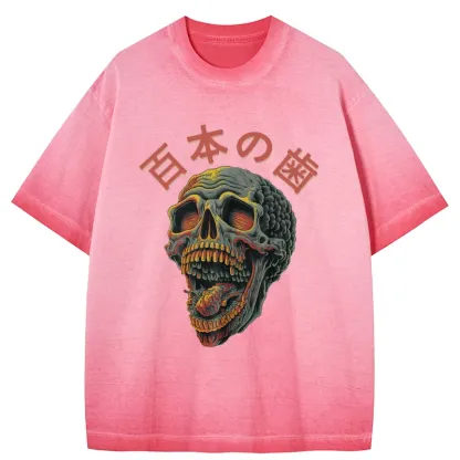 Terrifying And Disgusting Skull Gradient Washed T-Shirt