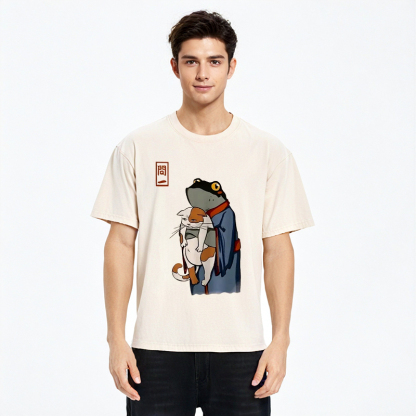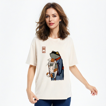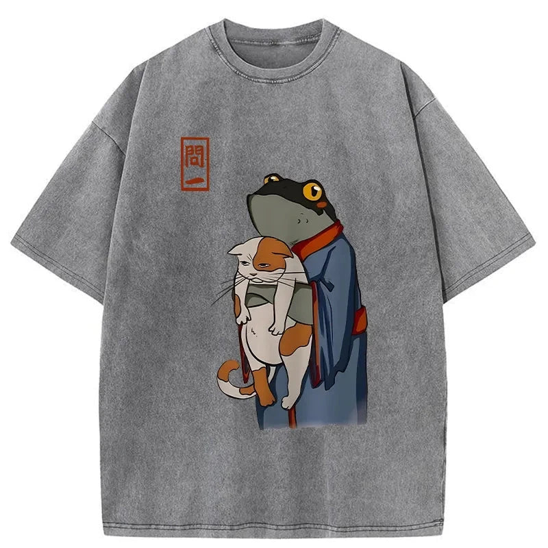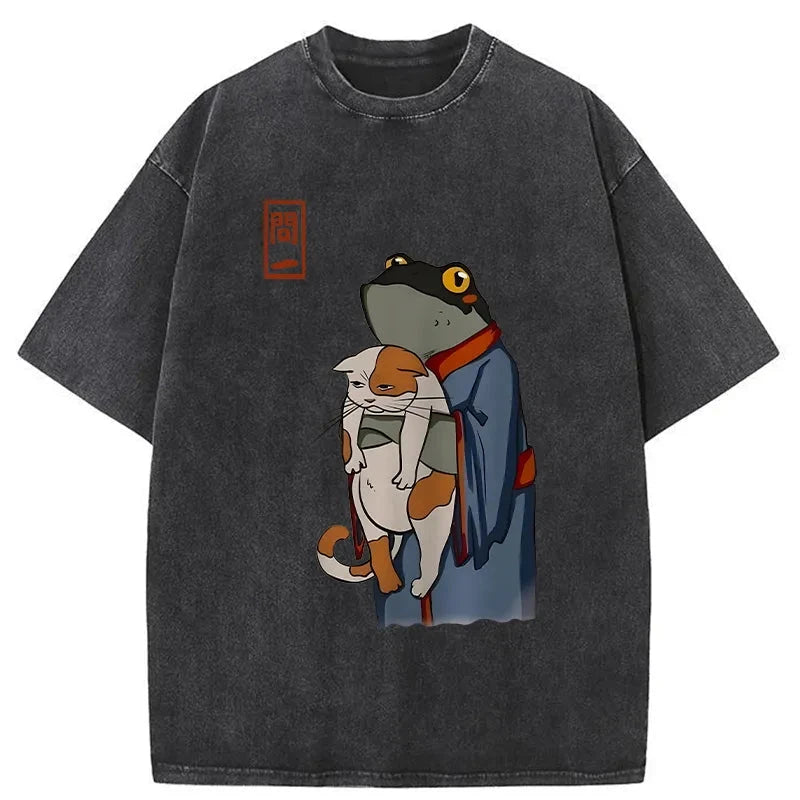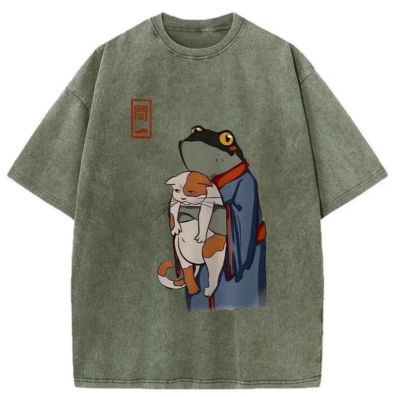 The Frog Holds The Cat Washed T-Shirt For Sale