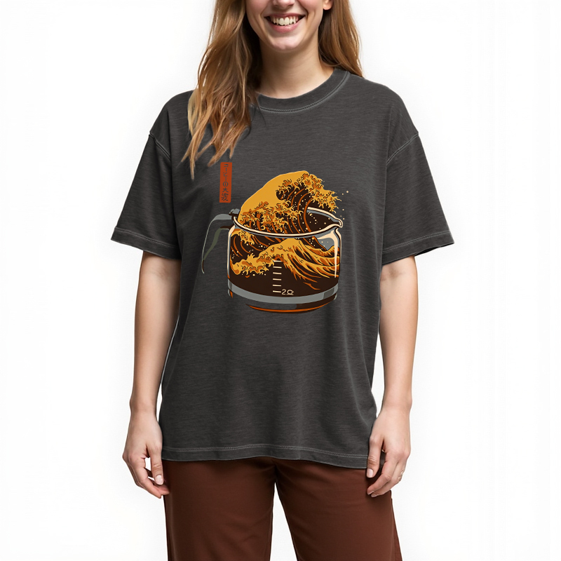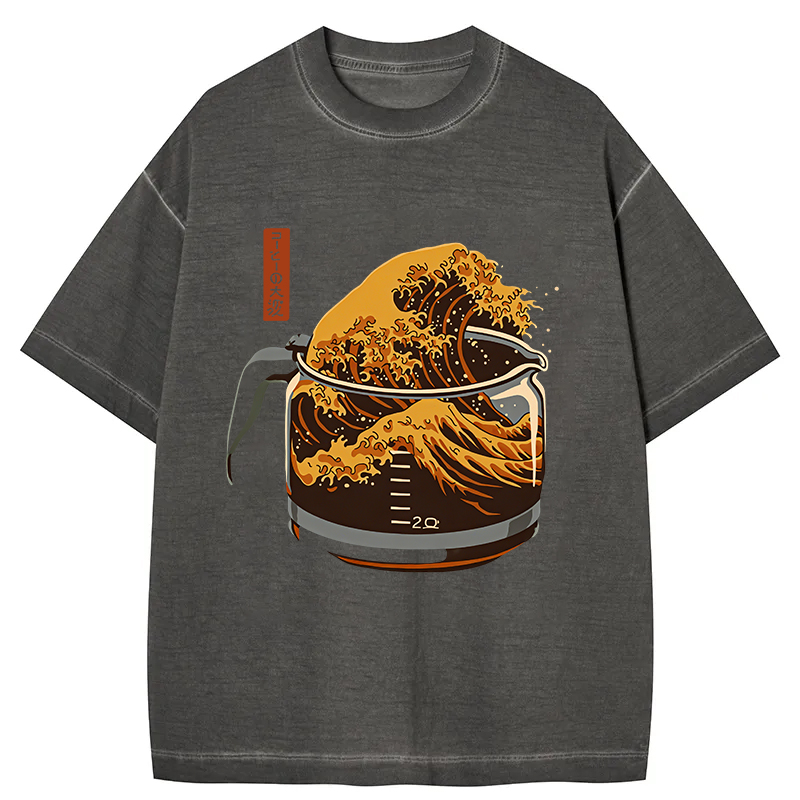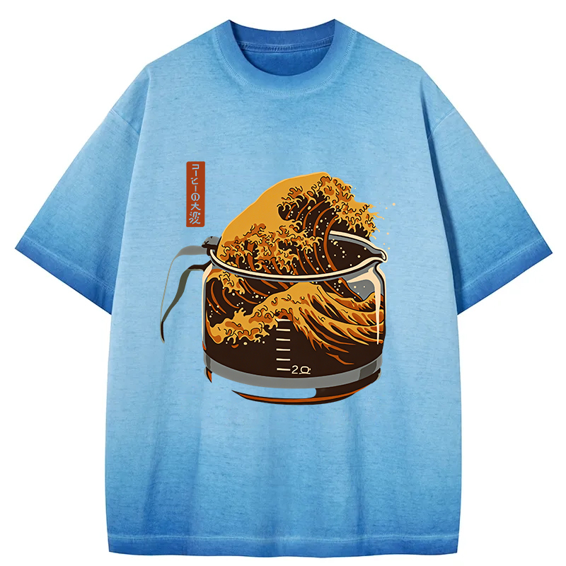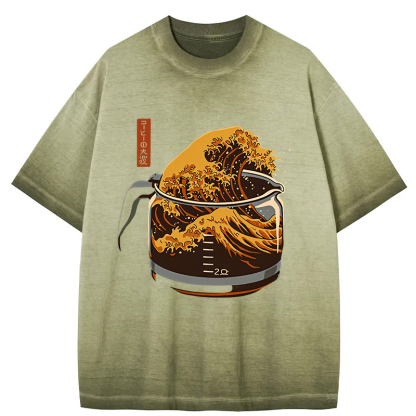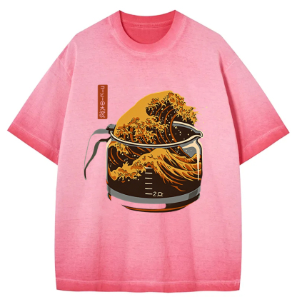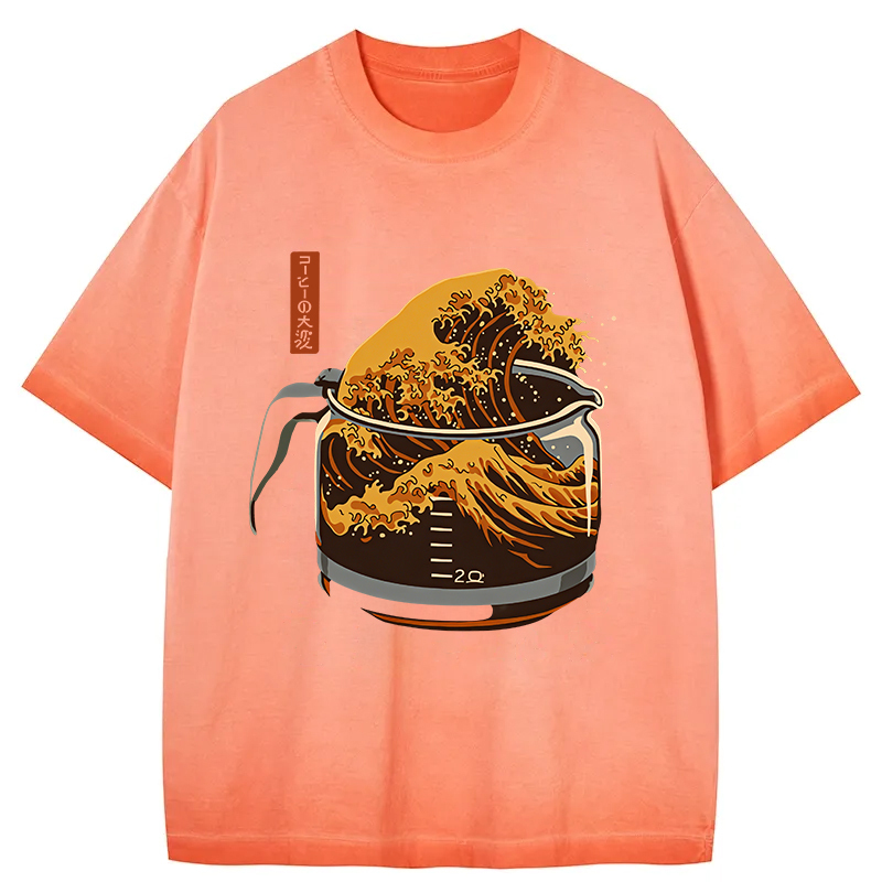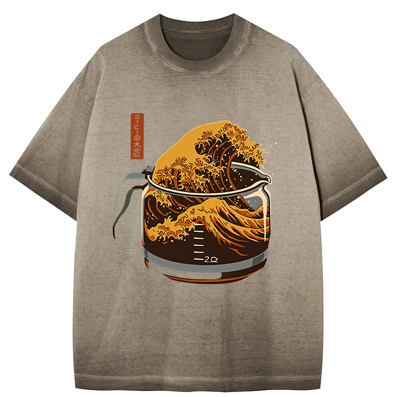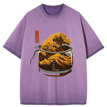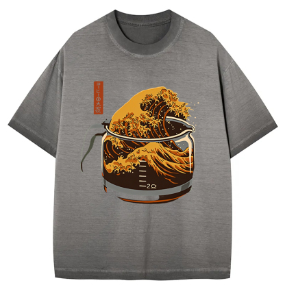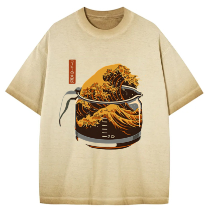The Great Wave Off Coffee Japanese Gradient Washed T-Shirt