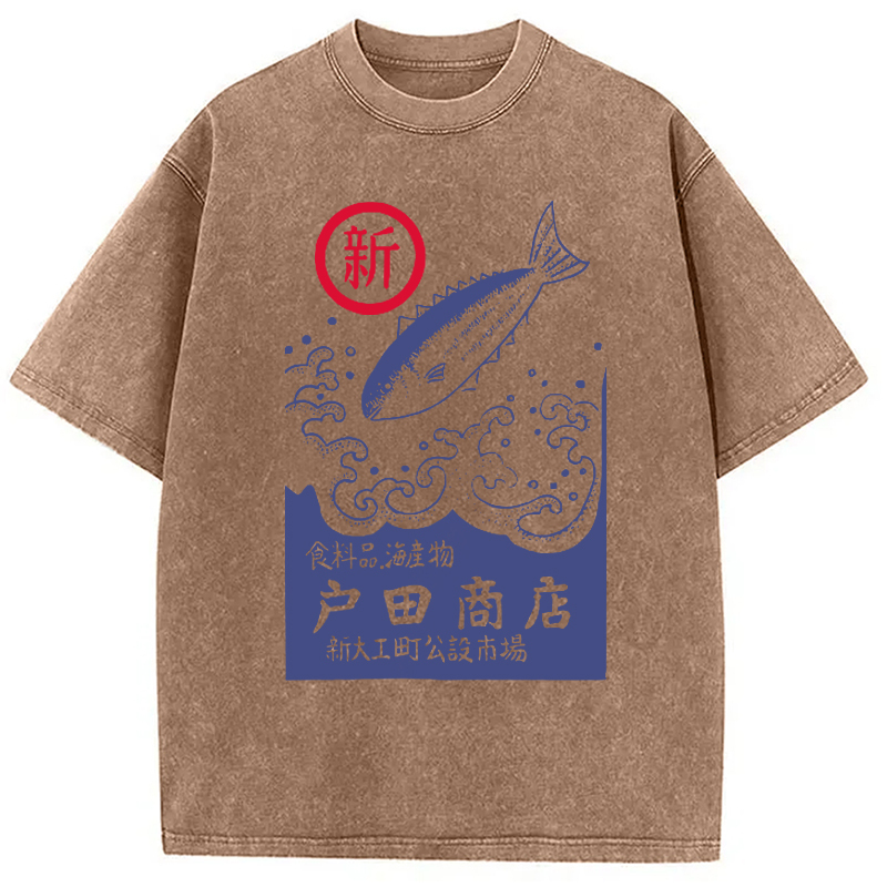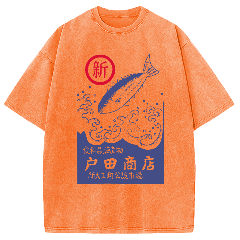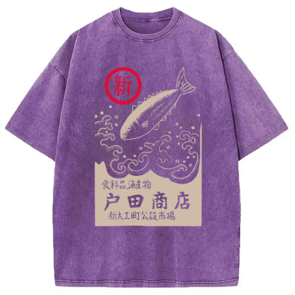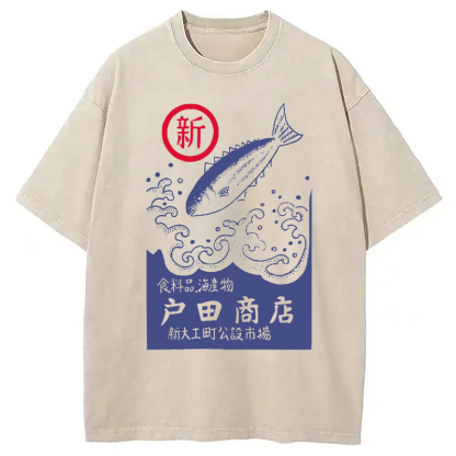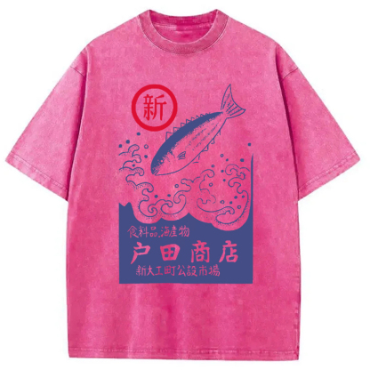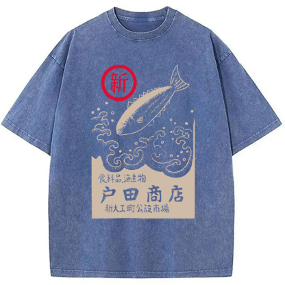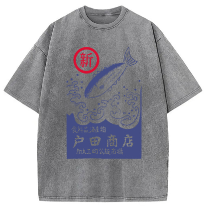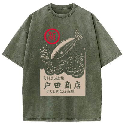 Tokyocanva Japanese Fish Store Washed T-Shirt