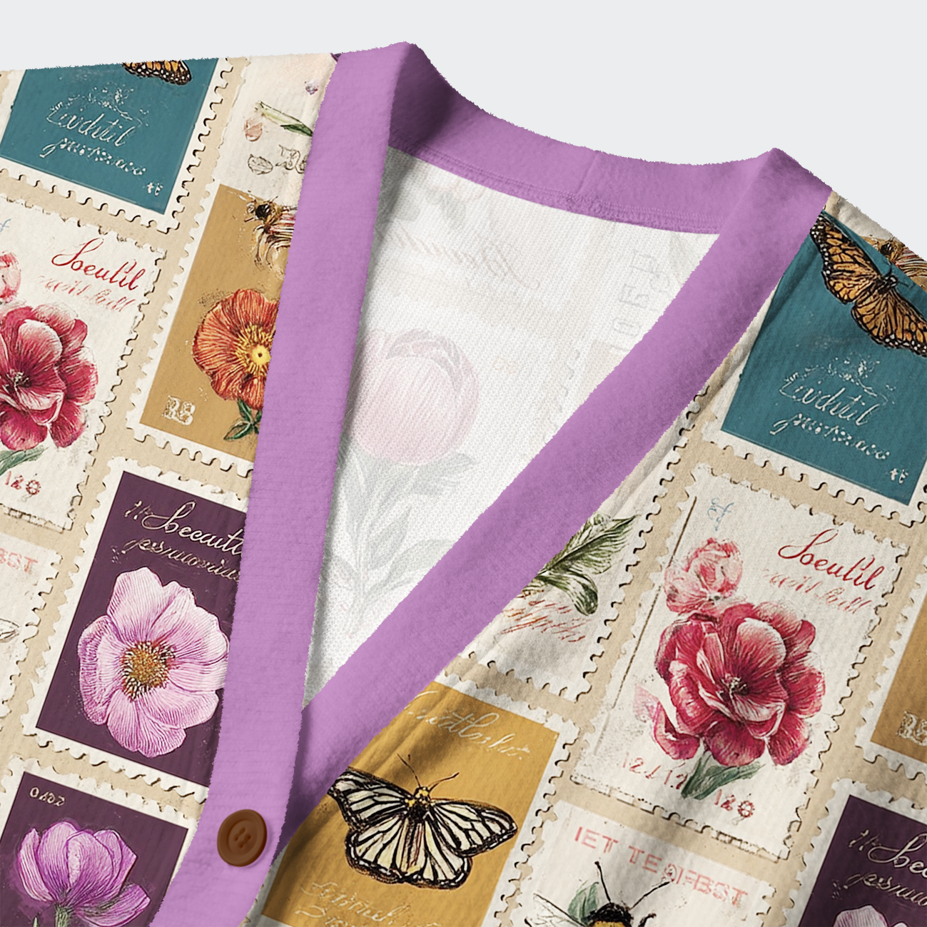 Vintage Floral Stamp Collage Ugly Cardigan Sweater