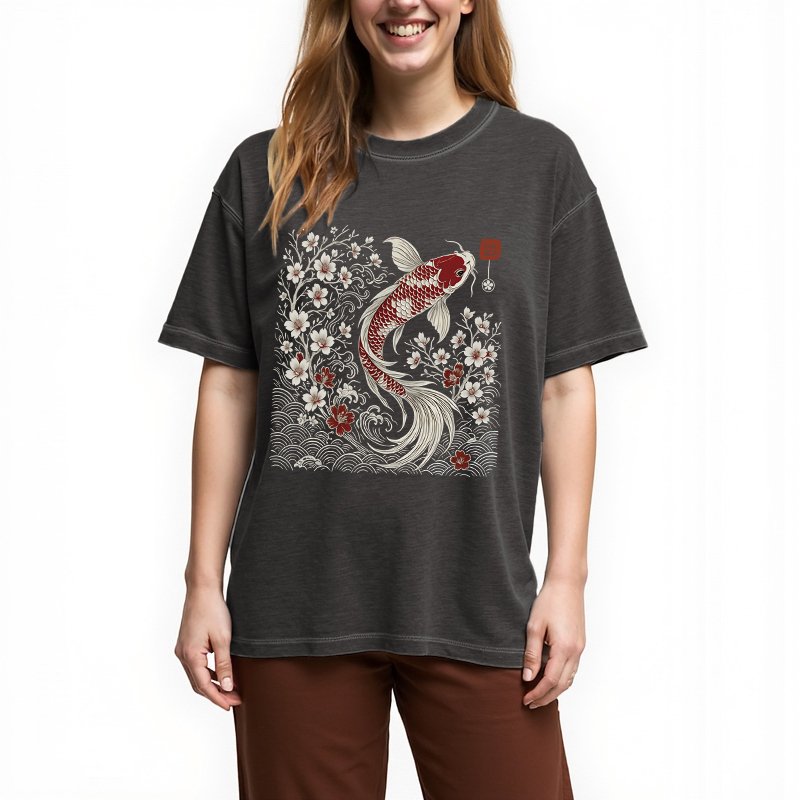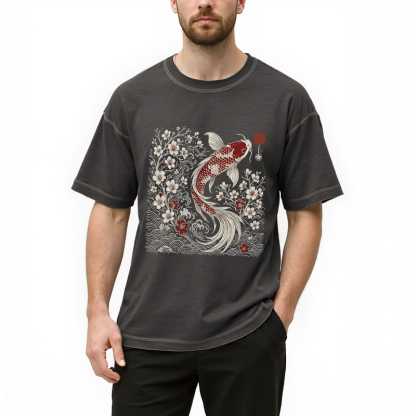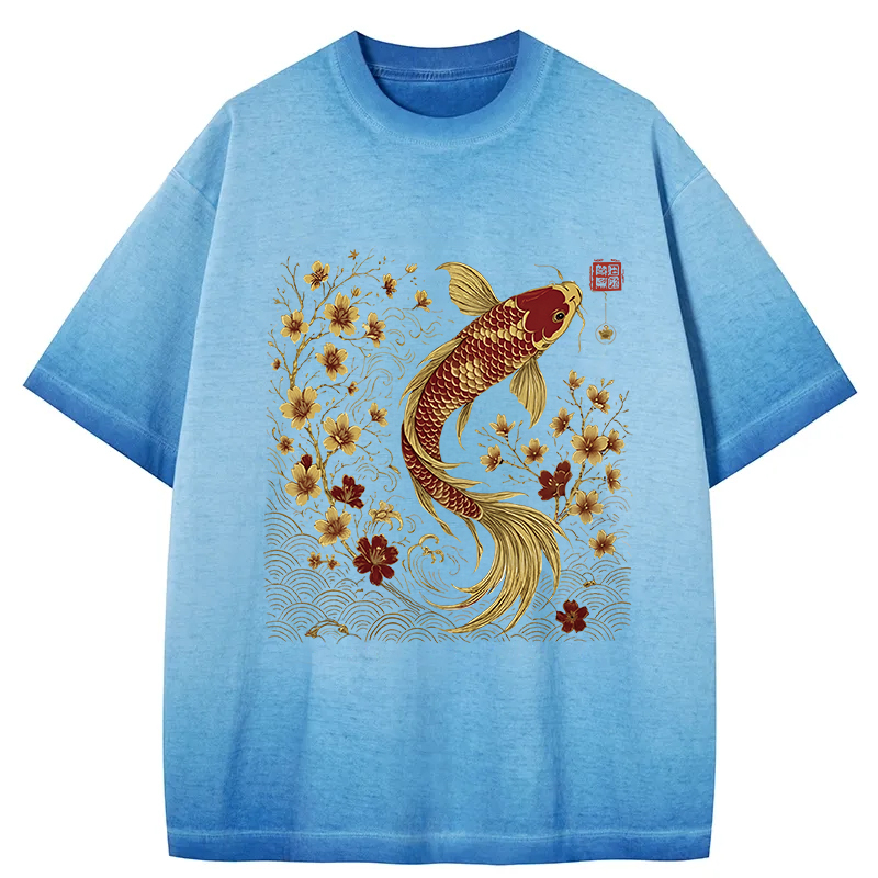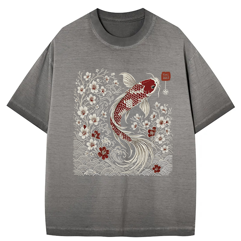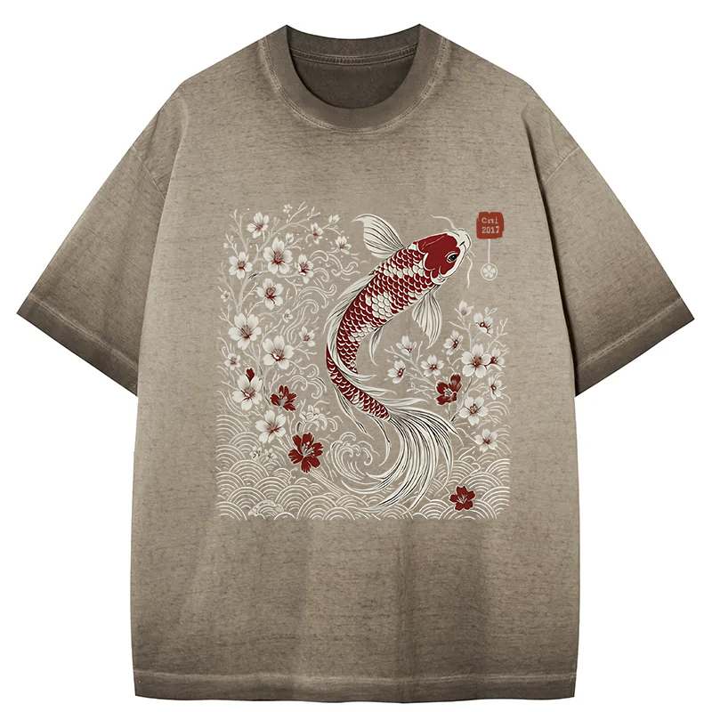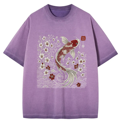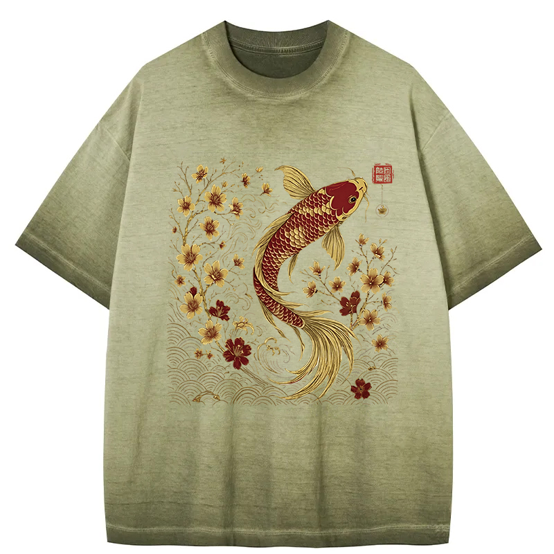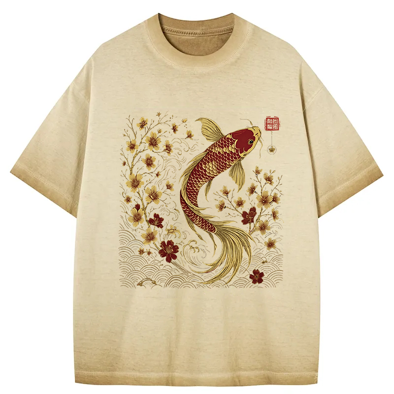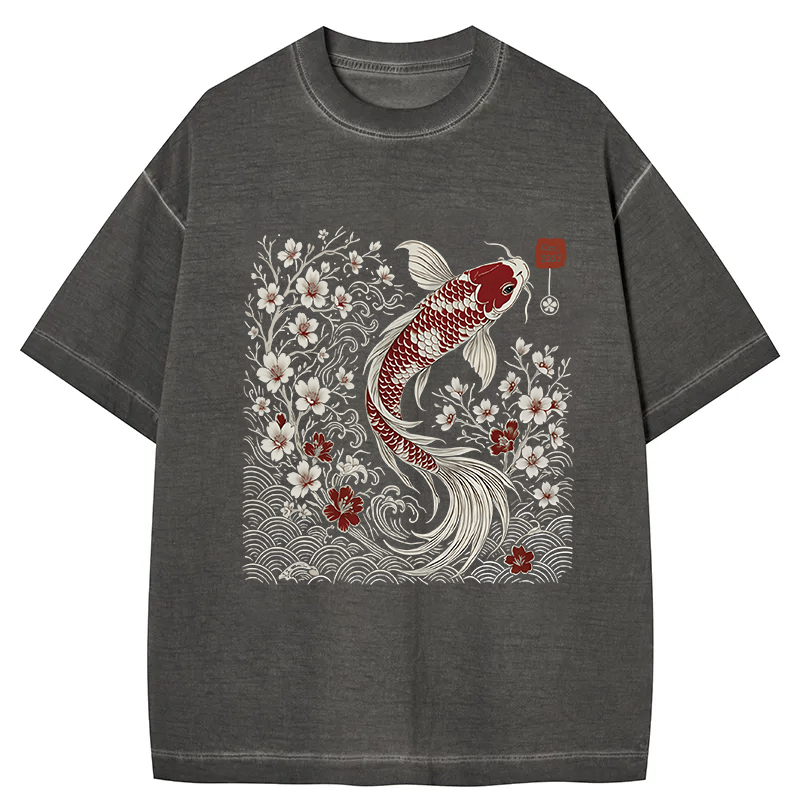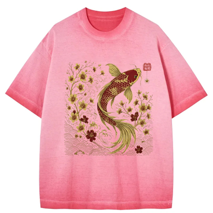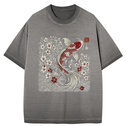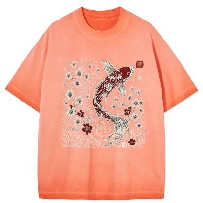 Vintage Sakura And Koi Gradient Washed T-Shirt