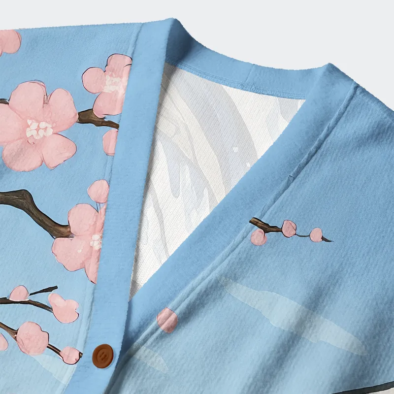Waves Under Mount Fuji Ugly Cardigan Sweater
