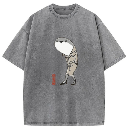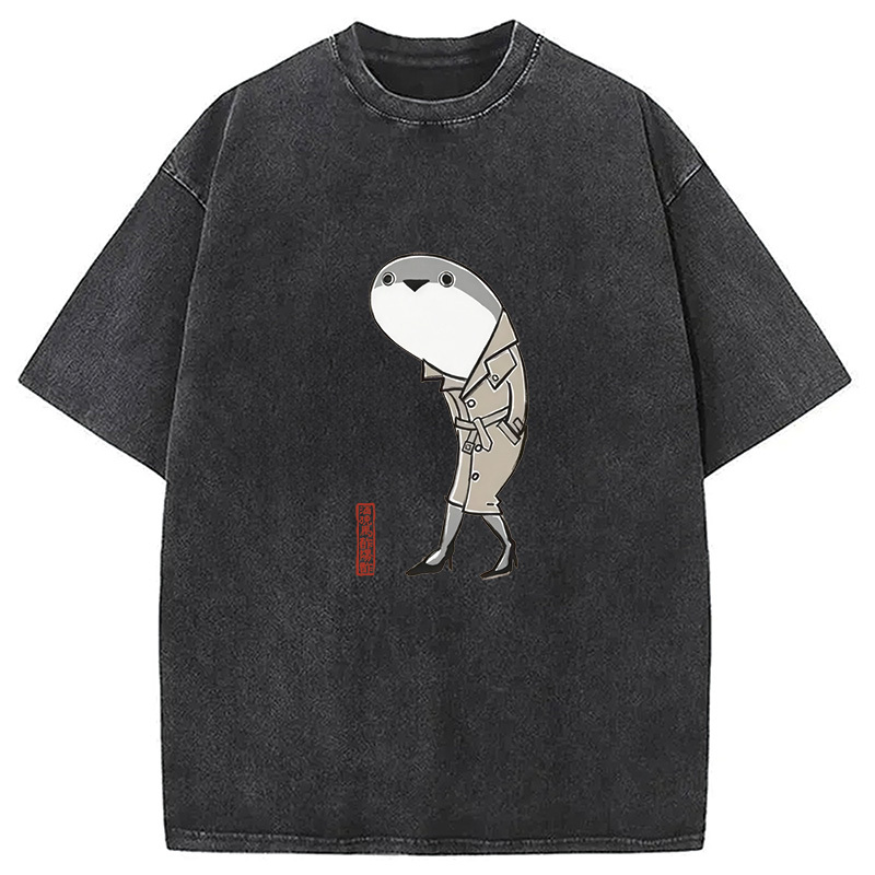 Weirdcore Cute Fossil Fish Washed T-Shirt