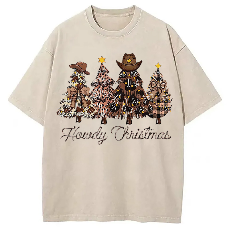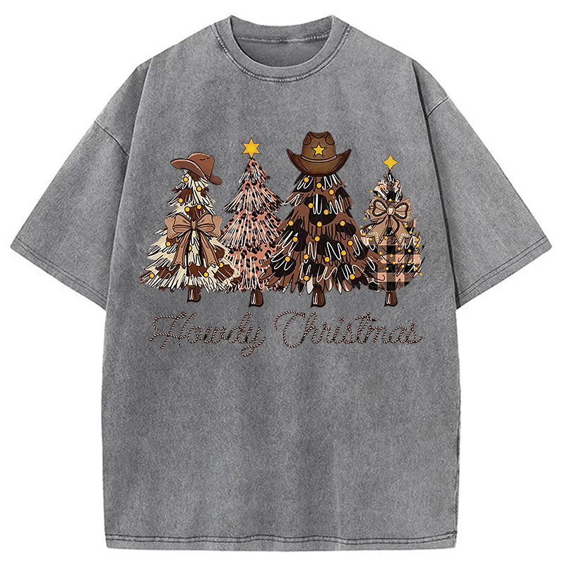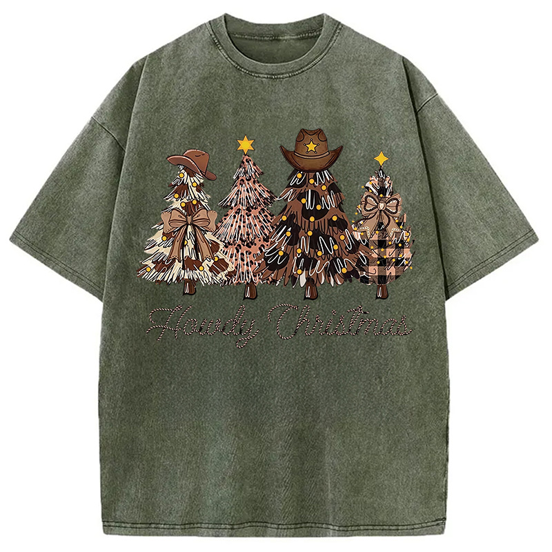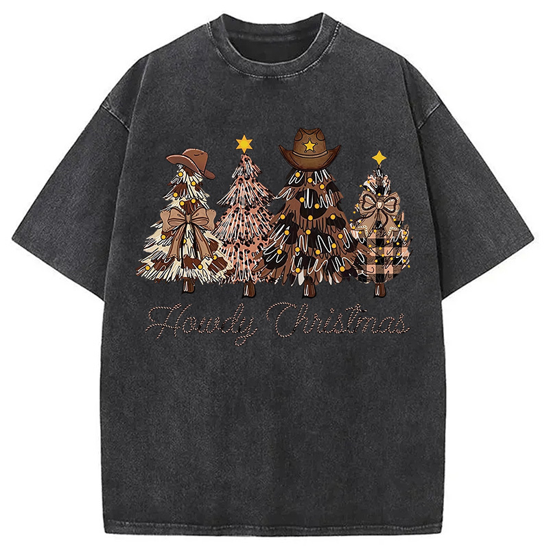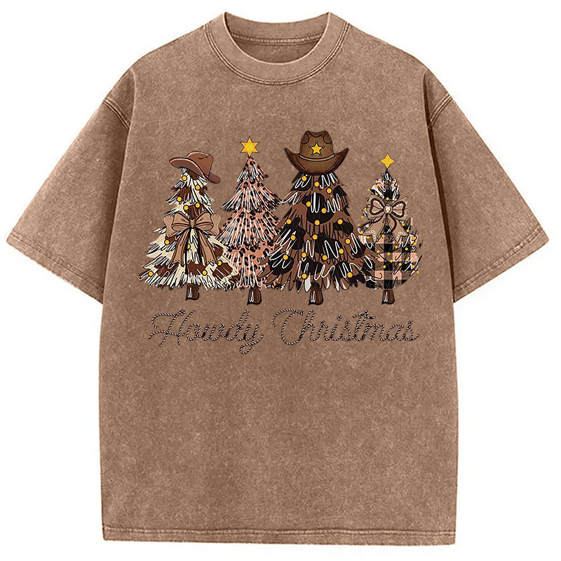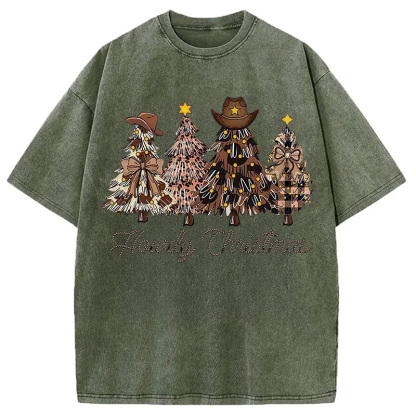 Western Howdy Christmas Tree Washed T-Shirt