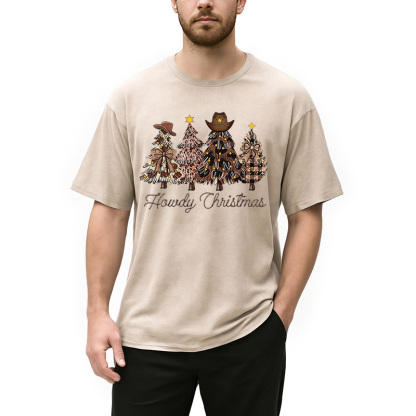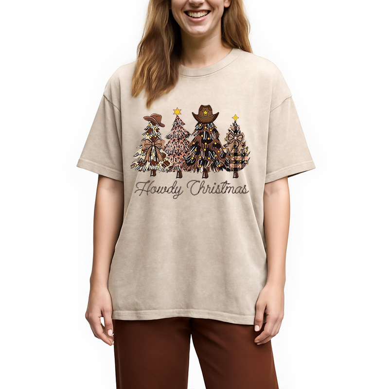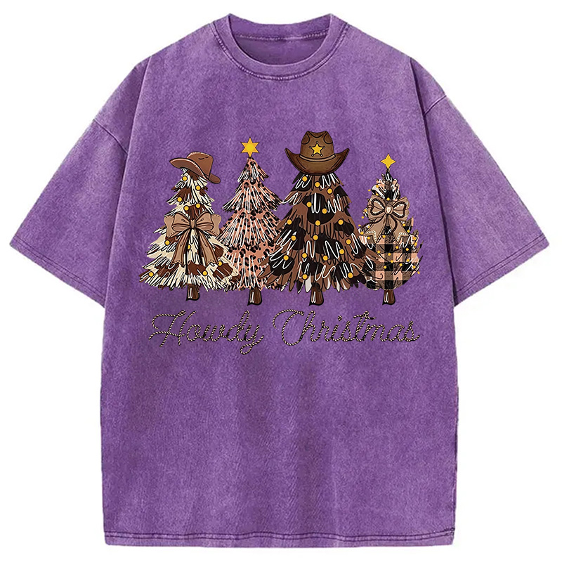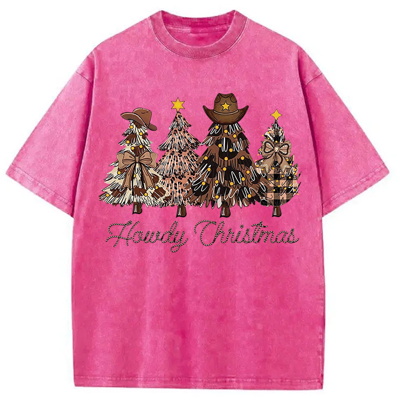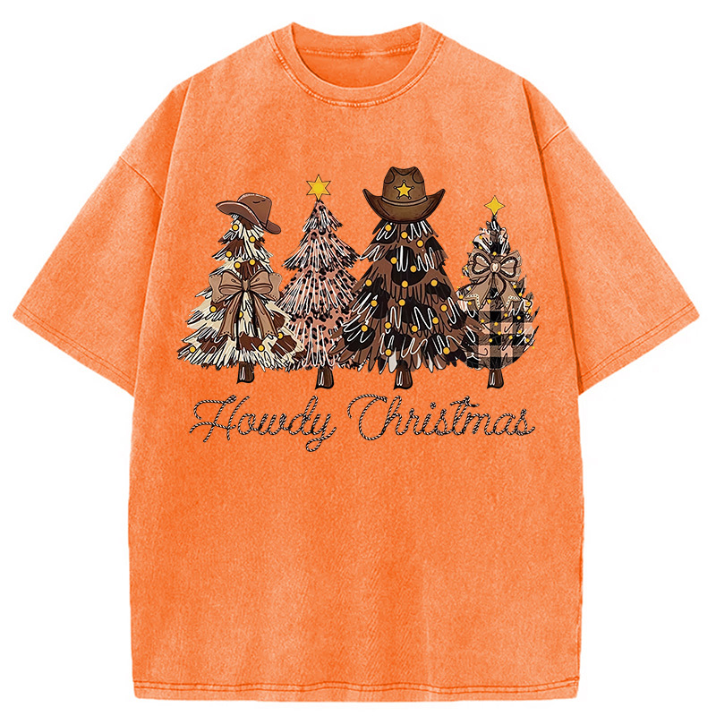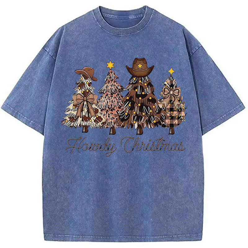 Western Howdy Christmas Tree Washed T-Shirt