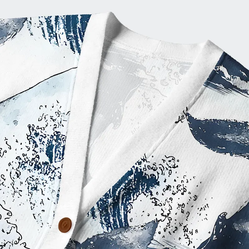 Whale Tail Wave Art Ugly Cardigan Sweater