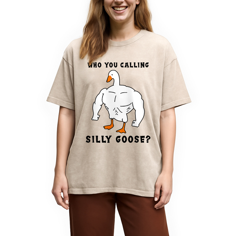 Who You Calling Silly Goose Funny Gym Meme Washed T-Shirt