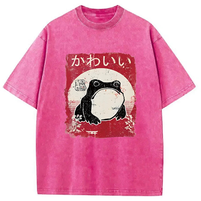 Woodblock Print Grumpy Frog Washed T-Shirt